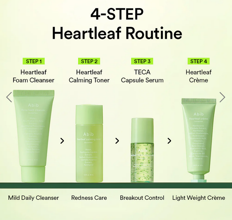 Heartleaf Calming Trial Kit Experience the restorative benefits of Heartleaf through Abib's thoughtfully assembled trial collection. This comprehensive 4-product system... Read more