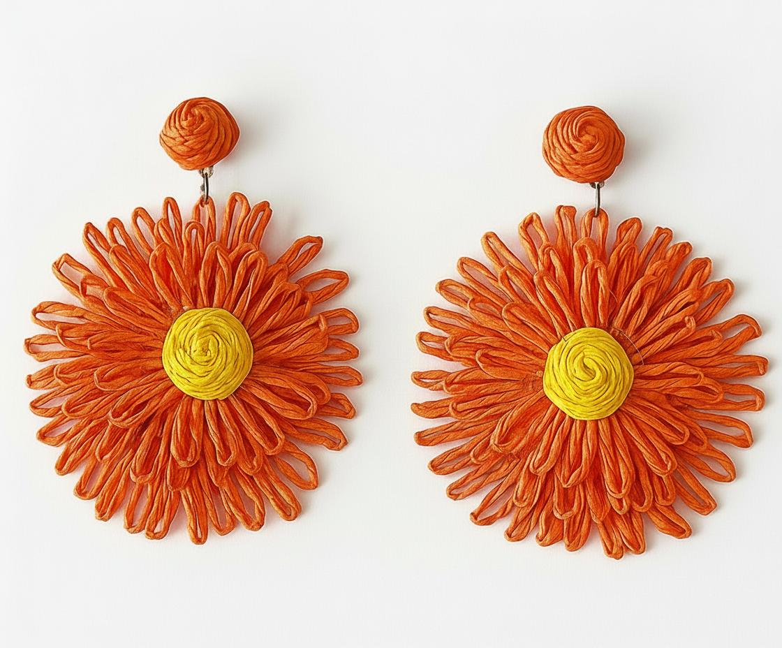 Vibrant orange-yellow flower earrings that add a cheerful pop of color to your summer wardrobe. Lightweight and versatile for any... Read more